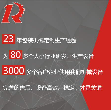 廣州市睿佳機(jī)械設(shè)備有限公司是國(guó)內(nèi)專業(yè)從事自動(dòng)化包裝機(jī)械產(chǎn)品,集研發(fā)、生產(chǎn)、銷售、服務(wù)于一體的制造公司,已通過(guò)ISO9001:2008質(zhì)量體系認(rèn)證,部分系列產(chǎn)品已通過(guò)歐盟CE認(rèn)證。 經(jīng)過(guò)多年的發(fā)展,公司專業(yè)生產(chǎn):封尾機(jī),灌裝機(jī),旋蓋機(jī),貼標(biāo)機(jī),包裝機(jī),輸送機(jī),噴碼機(jī),灌裝生產(chǎn)線等機(jī)械設(shè)備。企業(yè)以開發(fā)生產(chǎn)包裝機(jī)械和訂做特殊包裝機(jī)械為主,所生產(chǎn)的包裝機(jī)械在同行和客戶中都得到一致的贊賞,以高技術(shù)和穩(wěn)定的質(zhì)量遠(yuǎn)銷東南亞和歐美。在國(guó)內(nèi),也成為多家知名藥廠、食品廠、化妝品廠指定使用產(chǎn)品。 睿佳機(jī)械:“想客戶之所想,急客戶之所急”既是睿佳對(duì)廣大客戶的承諾也是睿佳的宗旨,睿佳將與時(shí)代同步、銳意進(jìn)取,以更優(yōu)質(zhì)的服務(wù)回報(bào)廣大客戶對(duì)睿佳的信賴和支持。